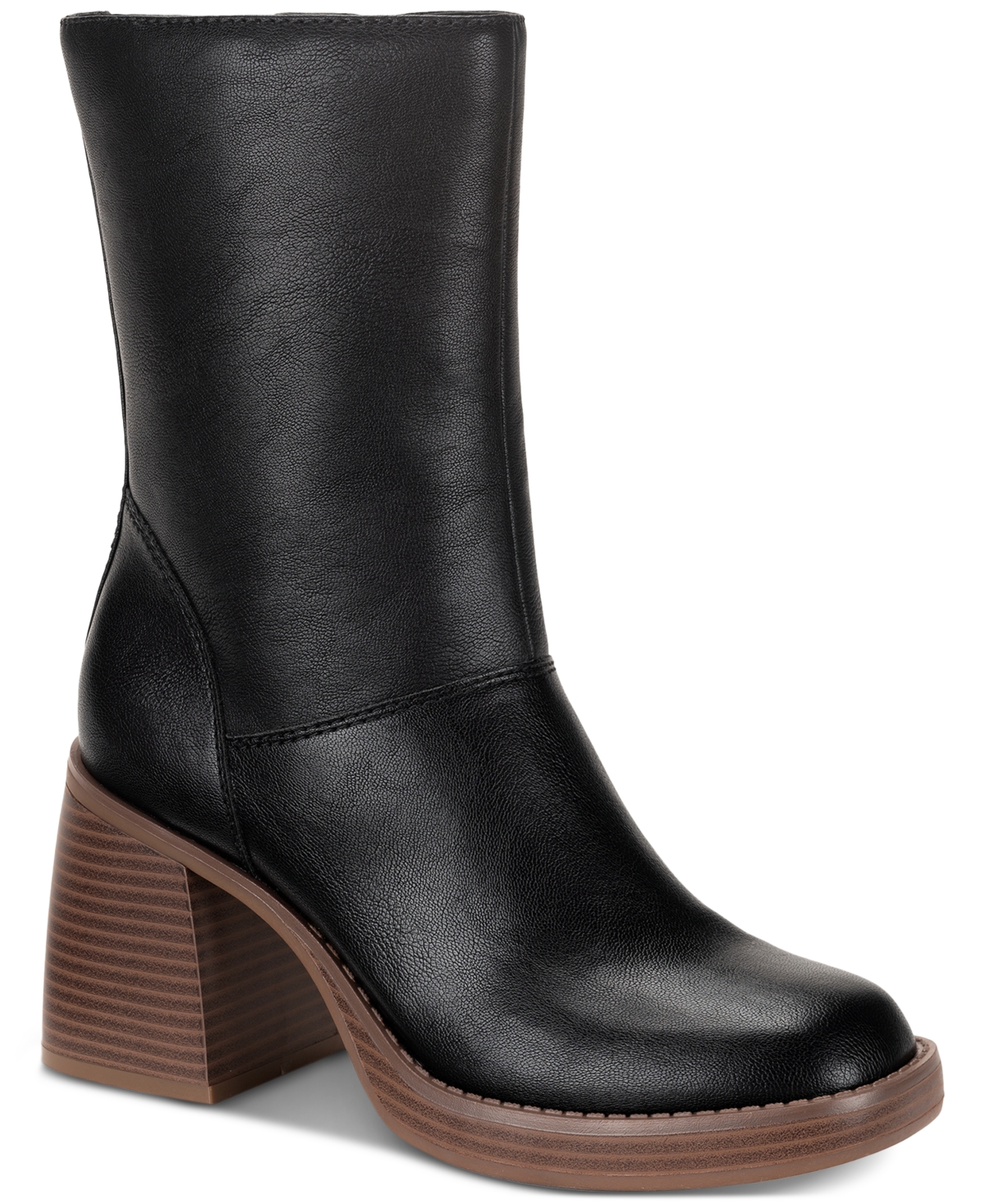 Aleenn Womens Stacked Round Toe Mid-Calf Boots