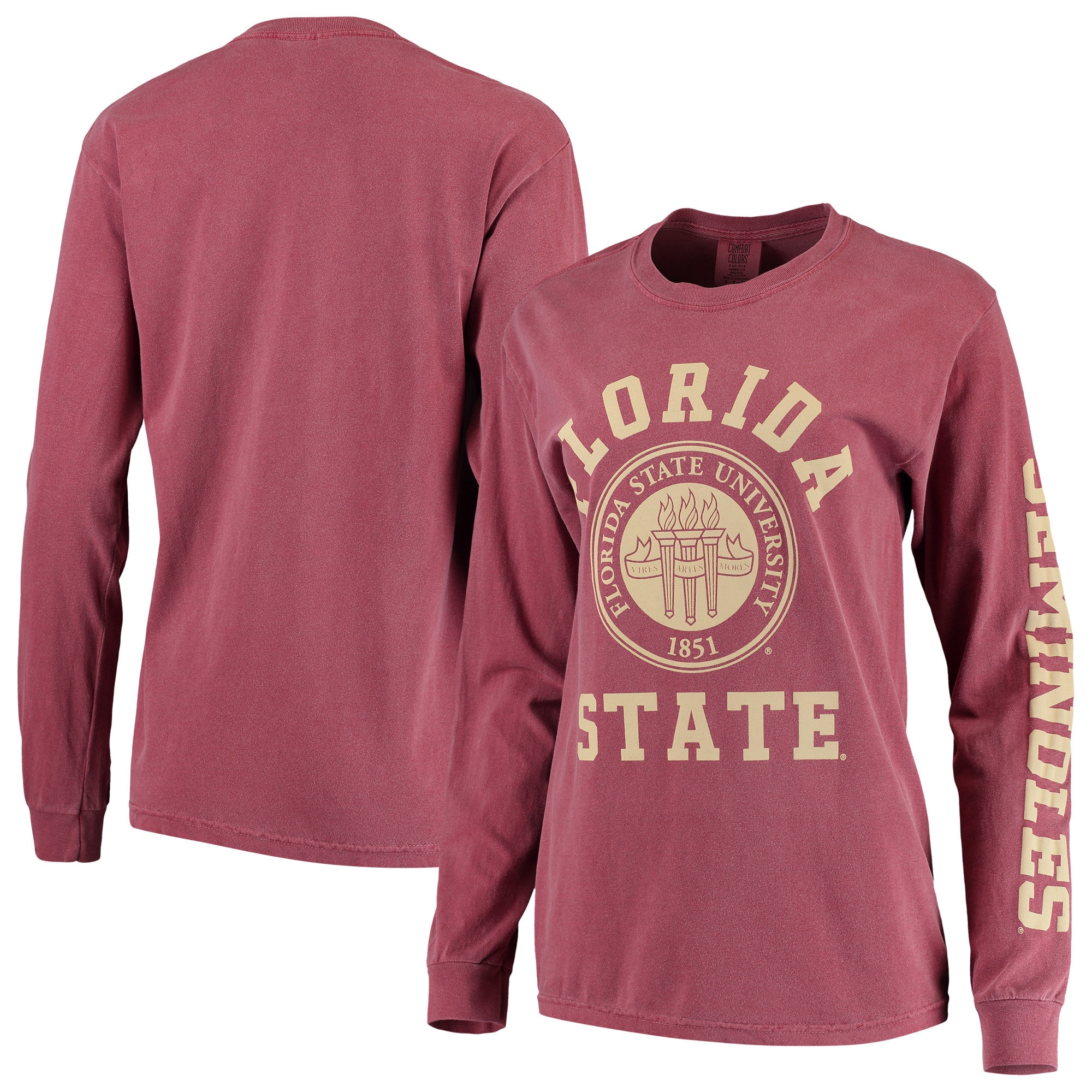 Women's Garnet Florida State Seminoles Oversized Comfort Colors University Seal Long Sleeve T-shirt